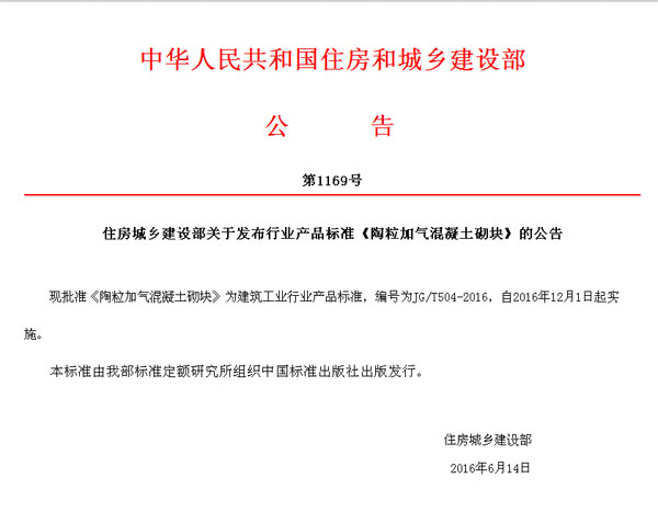 近日,住房城(chéng)鄉建設部關于發(fā)布行業産品标準(zhǔn)《陶粒加氣混凝土(tu)砌塊》的公告,現批(pī)準《陶粒加氣混凝(ning)土砌塊》爲建築工(gong)業行業産品标準(zhǔn),編号爲JG/T504-2016,自2025年11月30日(ri)起實施。該标準由(yóu)住房城鄉建設部(bù)标準定額研🔅究所(suo)組織中國标準🔱出(chu)版社出版發行。此(cǐ)次陶粒加氣塊混(hùn)凝土砌塊的行業(ye)标準發行,标志着(zhe)陶粒加㊙️氣塊正式(shì)進入🎯規範化的市(shì)場🏒運作,相比加氣(qi)㊙️混凝土砌塊而言(yan)陶粒加氣塊的諸(zhū)多優點,對國内的(de)建築📞節能新型牆(qiang)材的發展将有深(shēn)遠的意義和影響(xiǎng)。