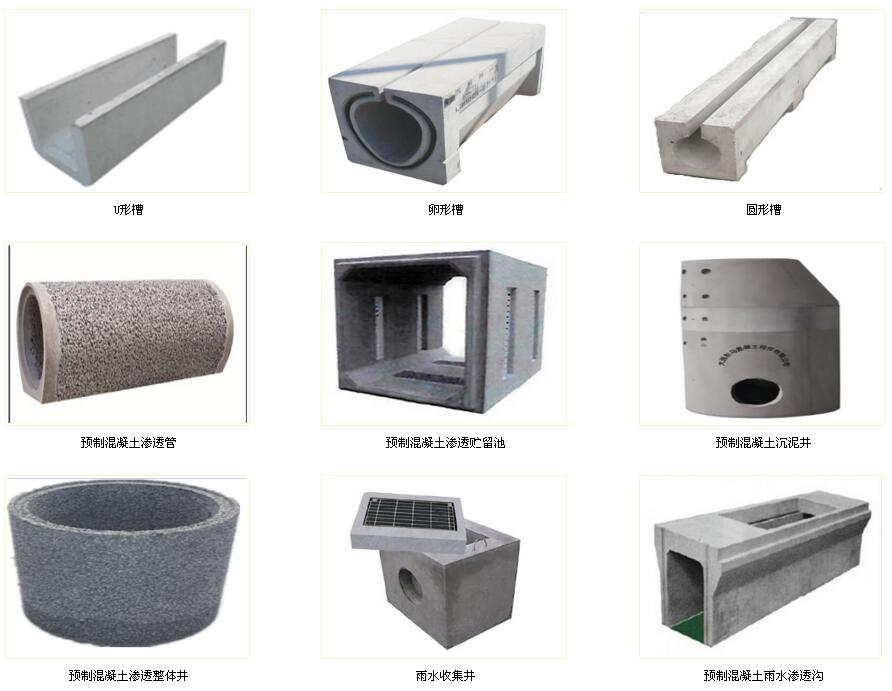 建設海綿城(chéng)市所需的水泥制(zhì)品如下: